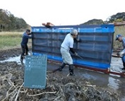 作業中沼にはまり込む会員もあり、汗と泥まみれになるなどの重労働であった。 新型生簀完成後の計画として、12月中に移植用マコモを沼から抜き取り、天日乾燥(ザリガニ除去)をした後、28年3月初旬~中旬に移植、増殖をさせ4~5月の産卵期に産卵を促すための準備、作業を計画中である。